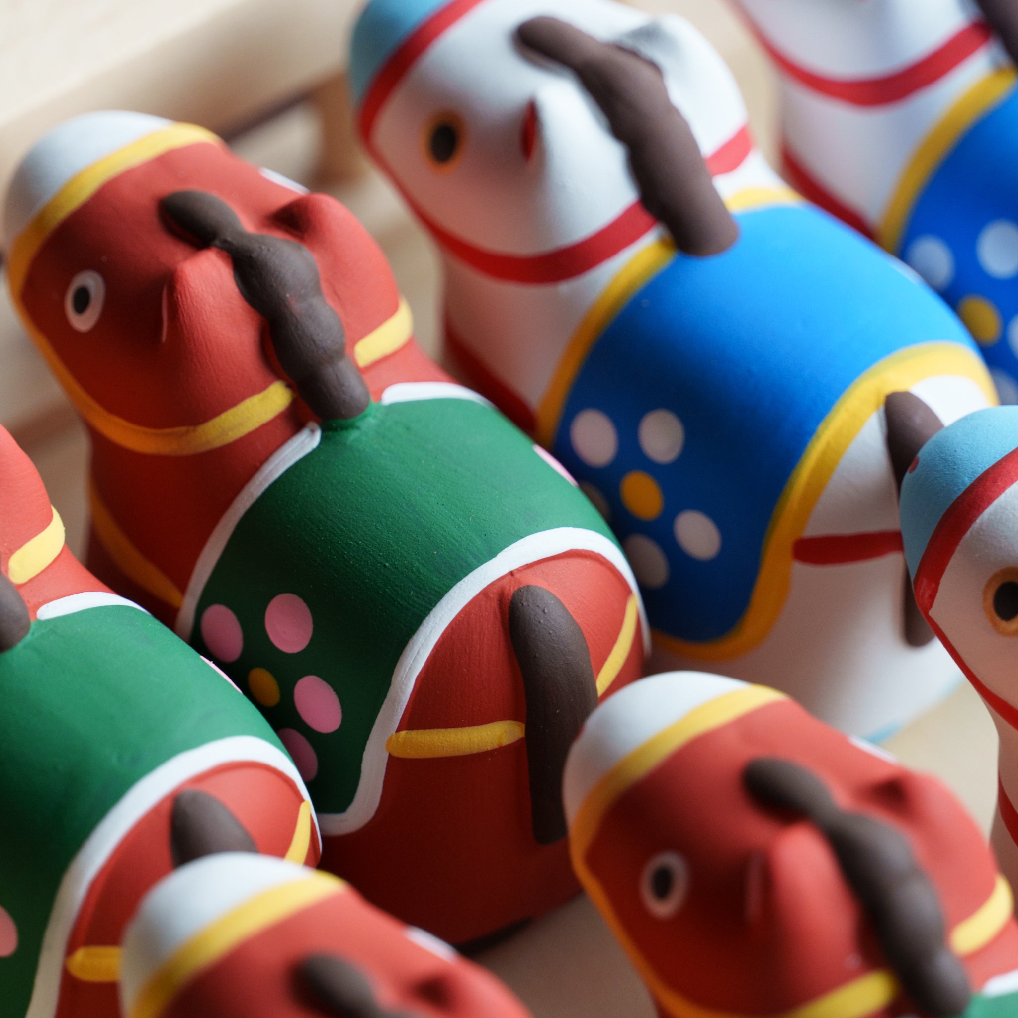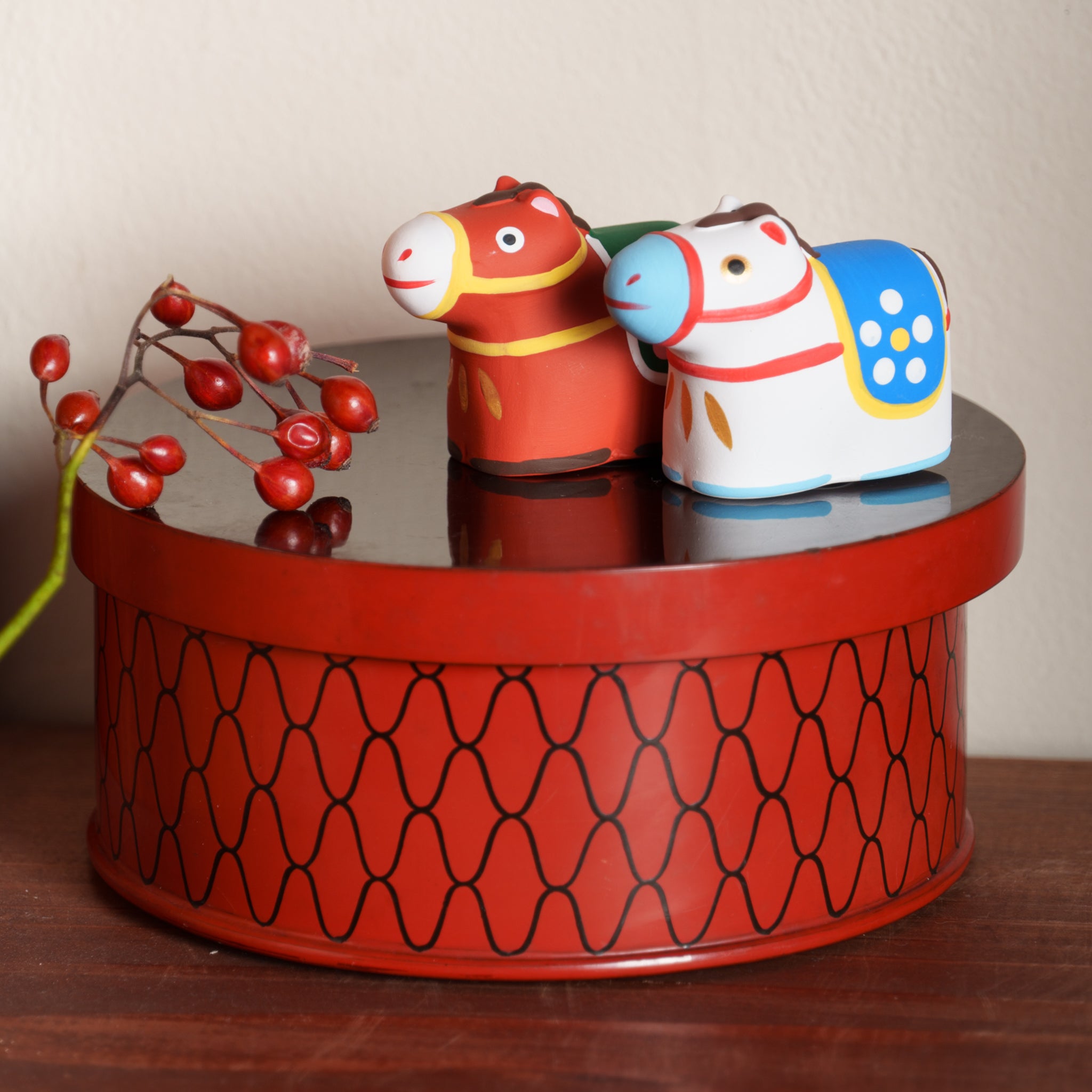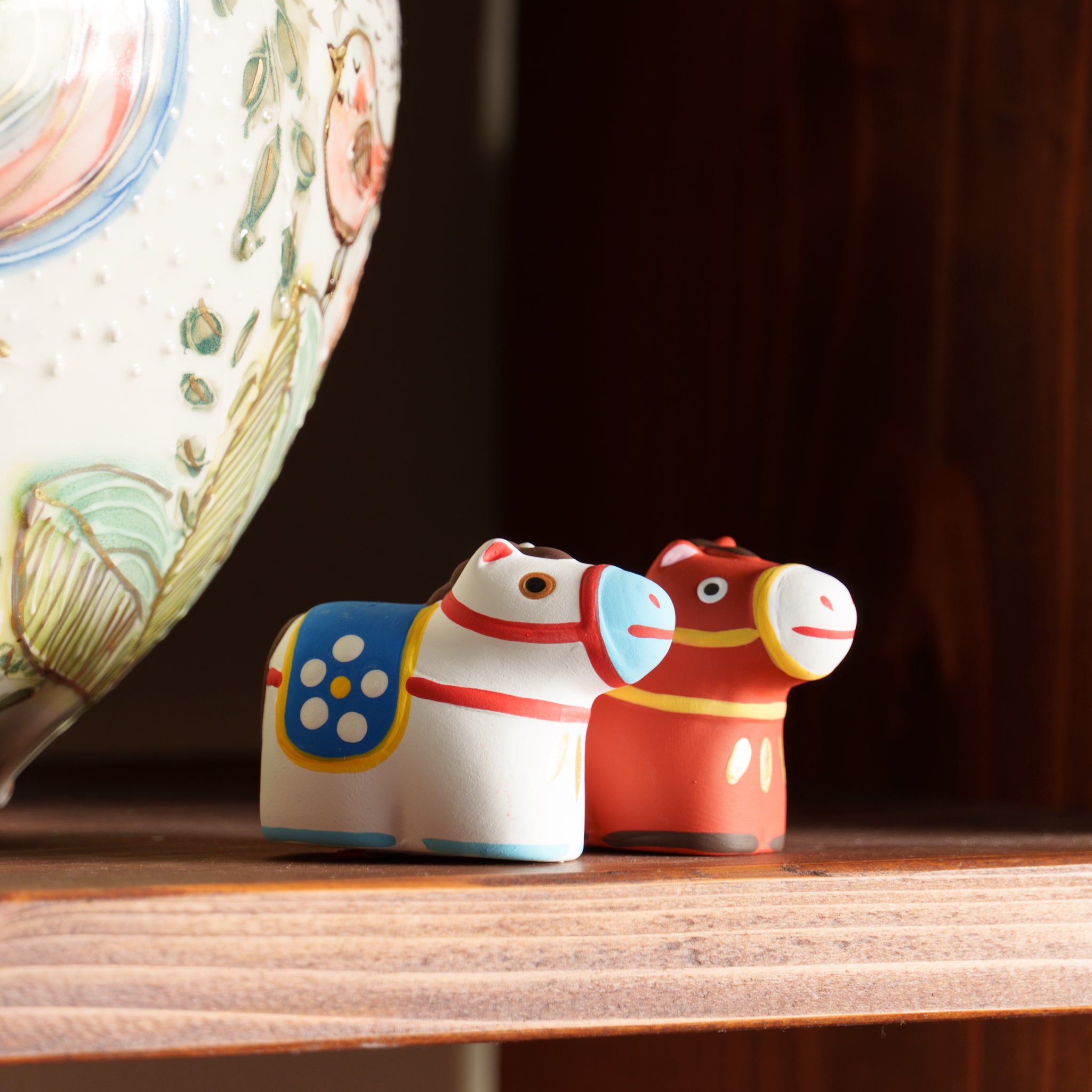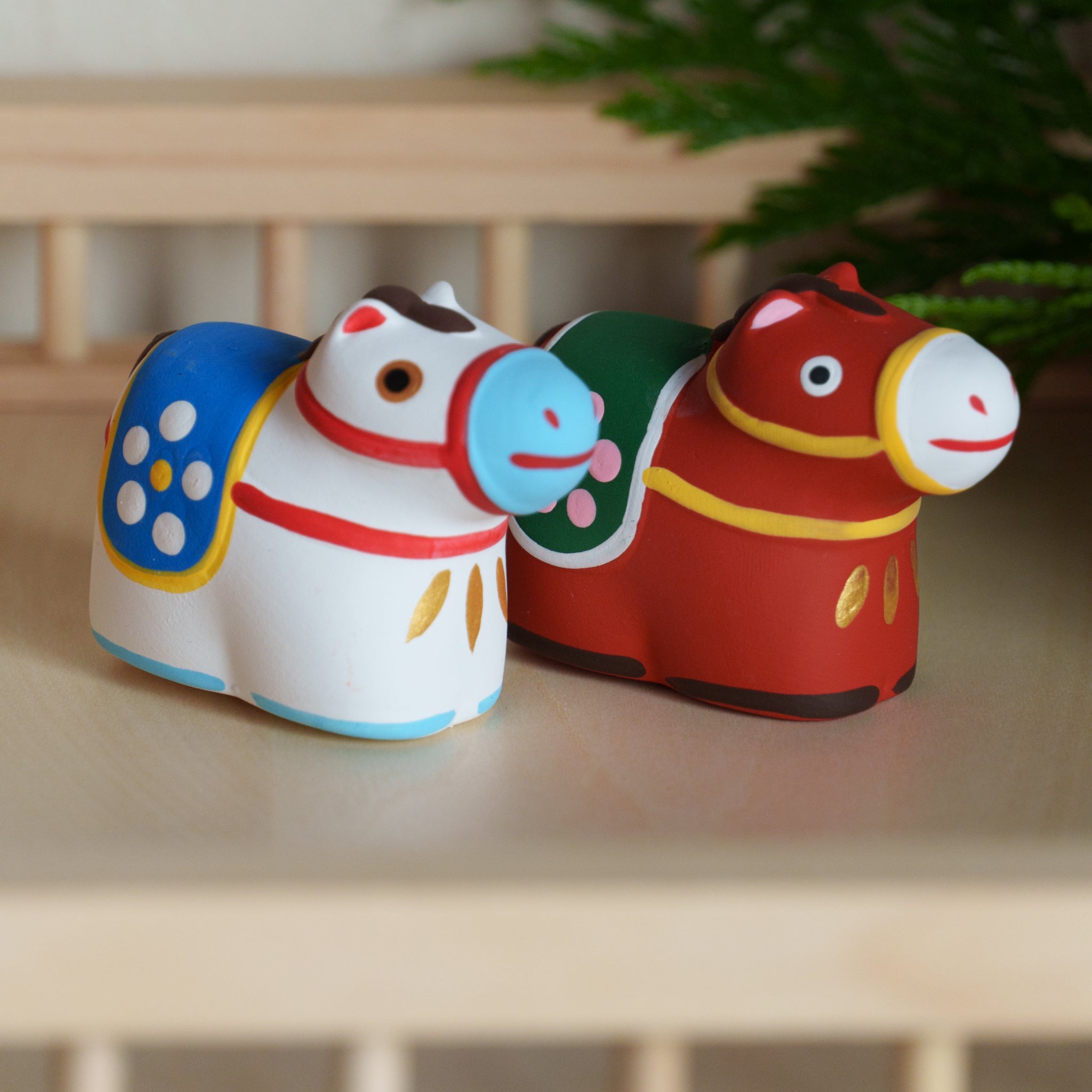 にっこりと朗らかな顔のウマをイメージした干支飾り。中には小さく折りたたんだおみくじが入り、運だめしも楽しめます。新しい年を陶製のウマと共に駆け抜けよう!